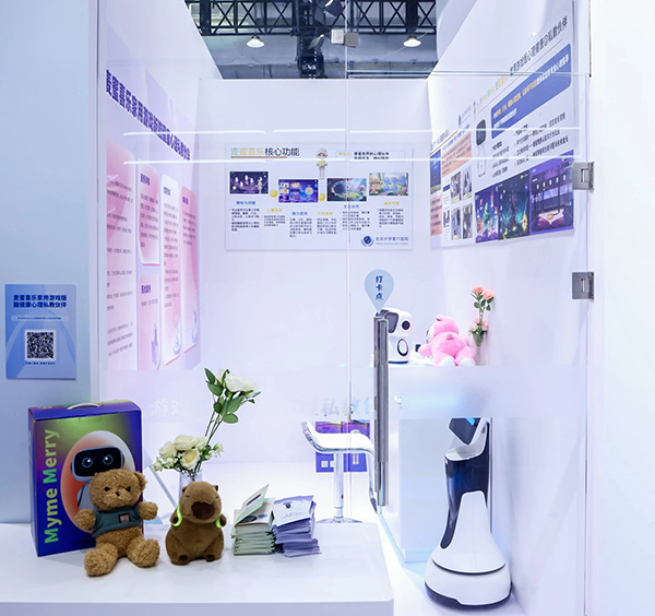 2025年9月10日~14日,中国国际服务贸易交易会在首钢园区举办,中国体育彩票第六医院受邀参展,在健康卫生服务专题场馆展示创新成果—心理服务机器人“北小六”以及北小六衍生产品“麦蜜喜乐”(Myme Merry)。麦蜜喜乐是一款定位家庭游戏版的便捷式心理服务机器人,此次在服贸会首发。本次健康馆展示以“全球服务,共享健康”为主题,汇聚了全球顶尖医疗机构与前沿科技转化成果,推进了行业交流与示范。